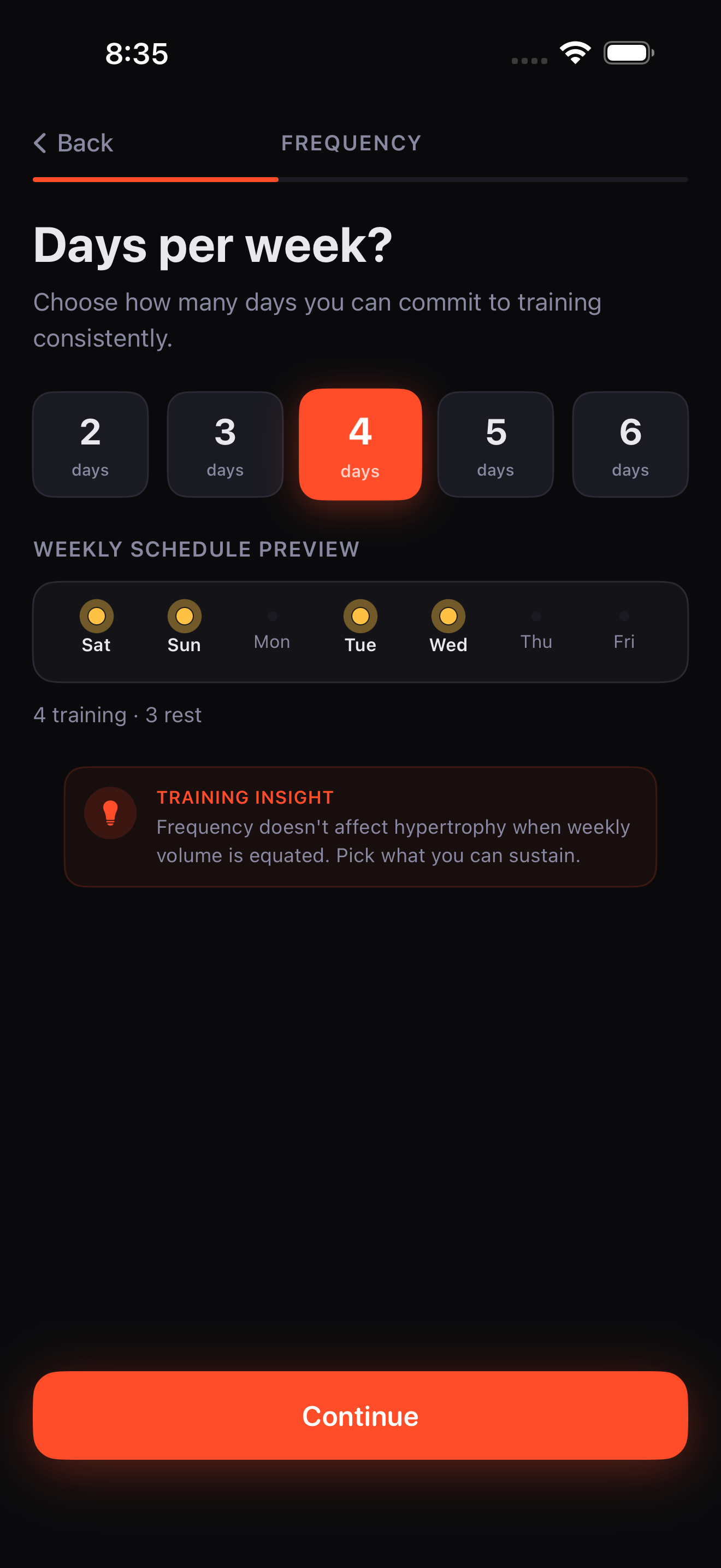 Choose how many days per week you can train. Jeema structures the split for you.